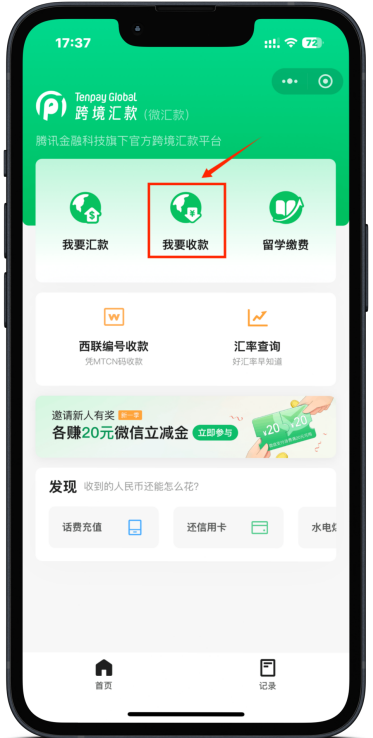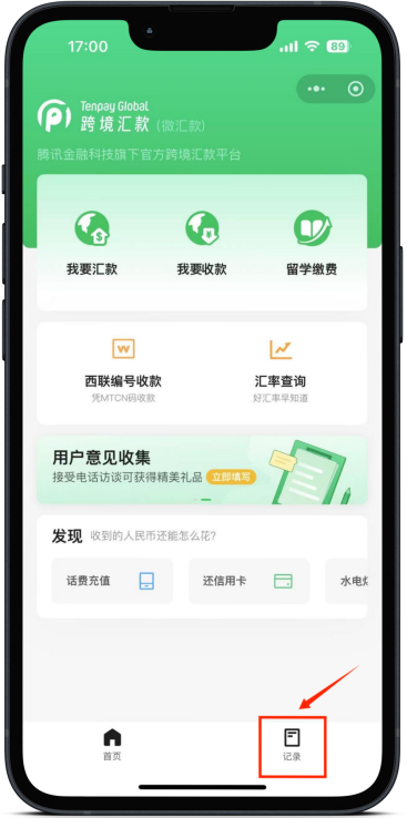 已绑定收款名片可以在收款记录查询收款进度,微汇款小程序首页选择【记录】-【收款记录】,如有收款中订单会在收款记录中显示,可点击查看收款进度。
