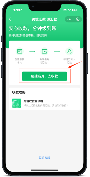 第二步:点击【我要收款】后选择【创建名片,去收款】