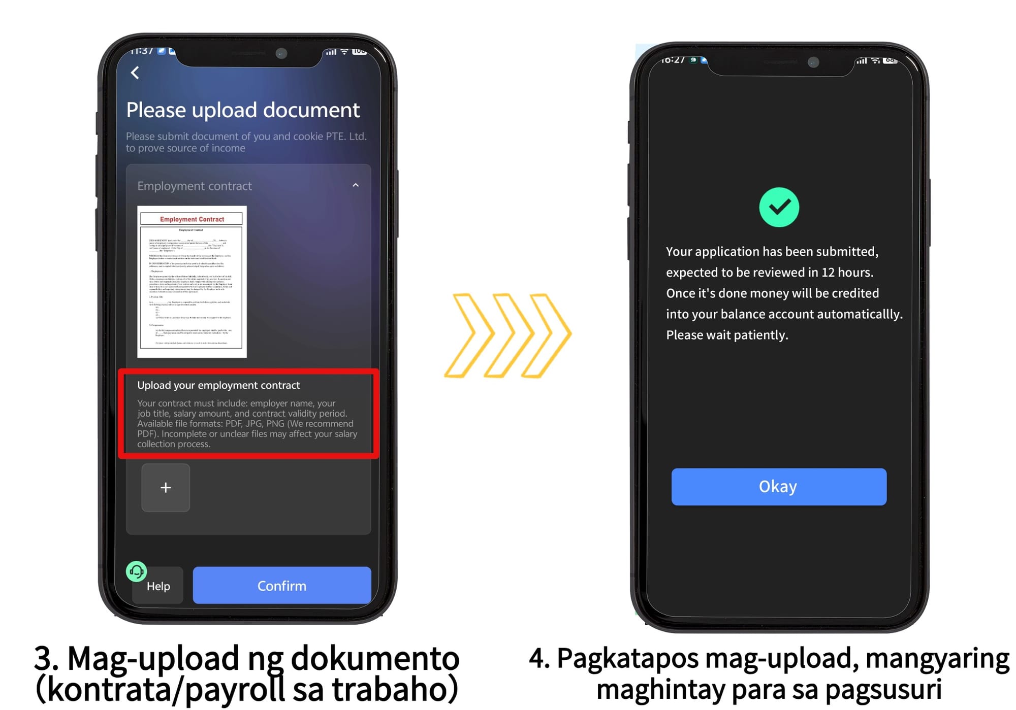 *Kung ito ang unang pagkakataon na magbabayad ang kompanyang ito sa iyong Starryblu account, mangyaring mag-upload ng dokumento. Kapag nakapasa ito sa pagsusuri, awtomatikong gagawin ang mga transaksyon mula sa parehong kompanya sa hinaharap.