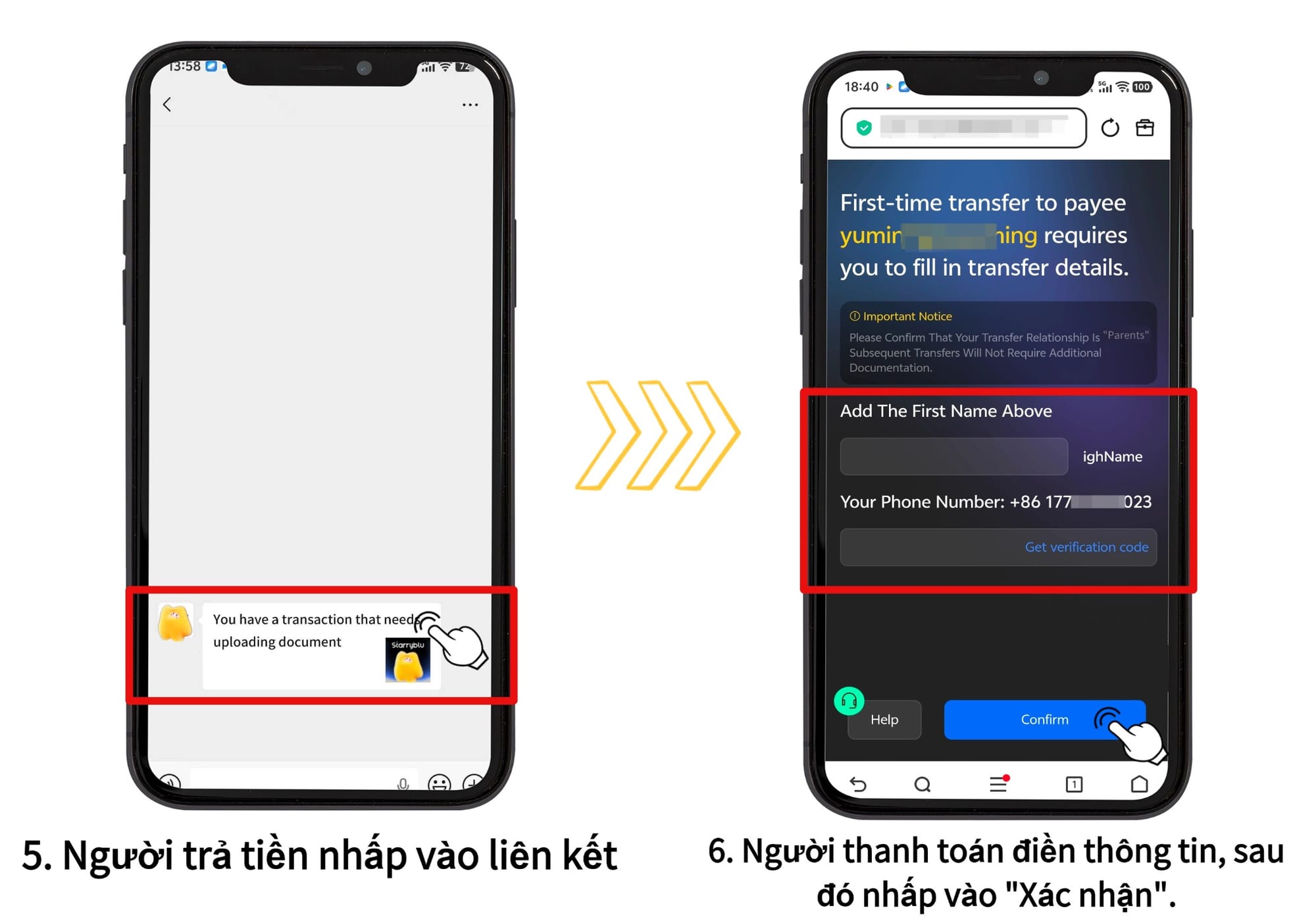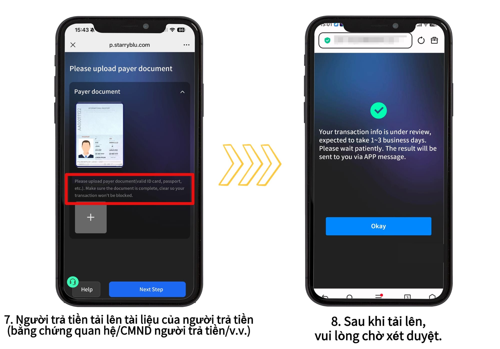 *Nếu đây là lần đầu tiên người này thanh toán vào tài khoản Starryblu của bạn, vui lòng tải lên tài liệu. Sau khi được duyệt, các giao dịch từ cùng người này trong tương lai sẽ được thực hiện tự động.
