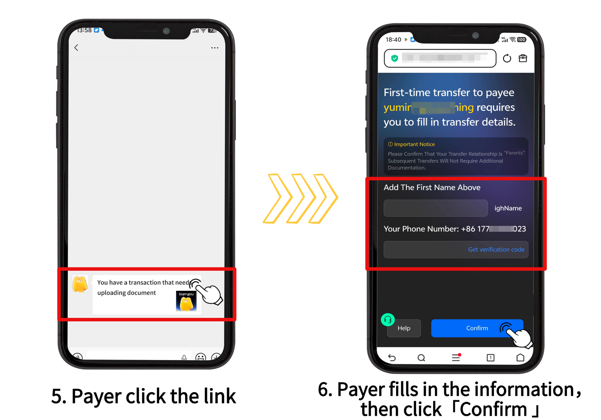 *If this is the first time this person pays to your Starryblu account, please upload document. Once it passes review, transactions from the same person in the future will be done automatically.