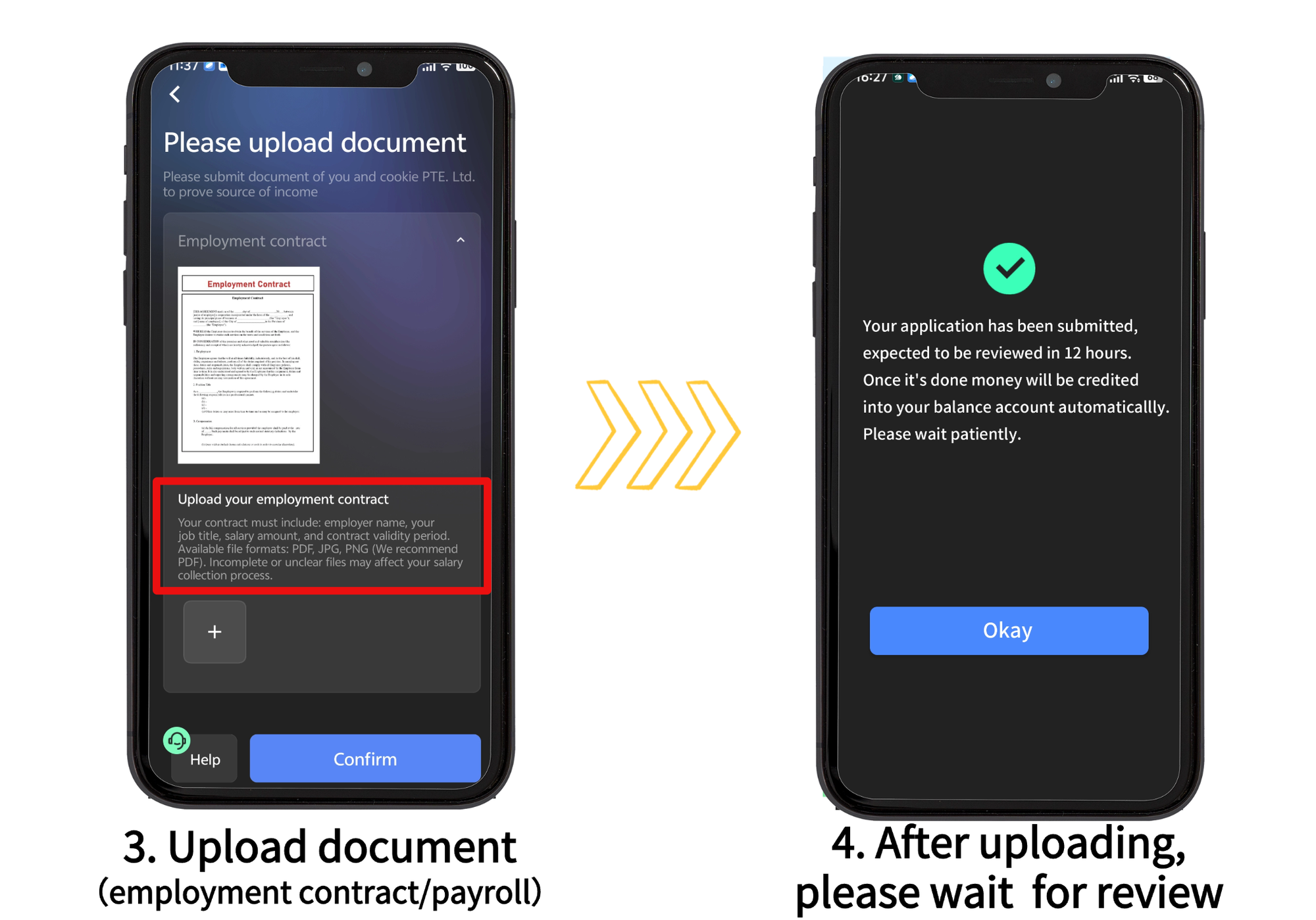 *If this is the first time this company pays to your Starryblu account, please upload document. Once it passes review, transactions from the same company in the future will be done automatically.